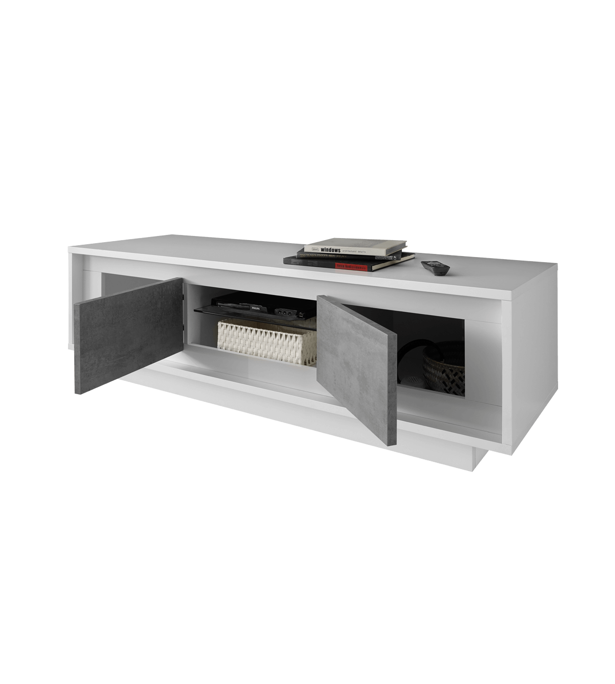 TV galds/ skapītis izgatavots no augstas kvalitātes materiāliem, un tam ir gluds un elegants dizains. Cementa apdare piešķirs industriālisma efektu un koka krāsas apdares piešķirs siltumu un tekstūru jūsu mājās. Plaša krāsu izvēle jūsu interjera vajadzībām.